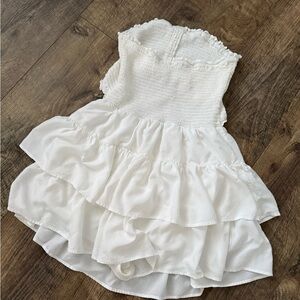 White Strapless Ruffle Mini Dress