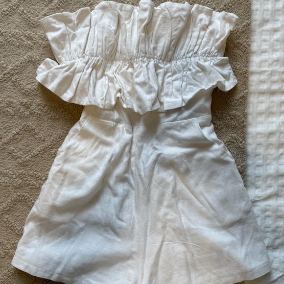 White Strapless Ruffle Romper
