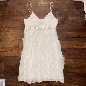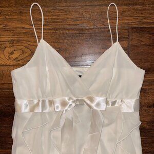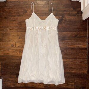 White Strappy Ruffle Dress with Satin Ribbon Tie