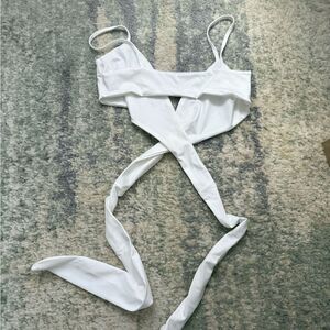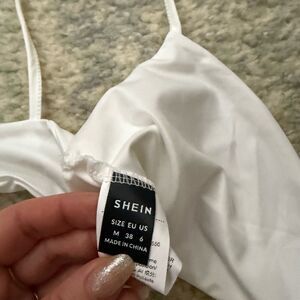 Chic white wrap top with thin straps from shein. Perfect for layering or wearing alone. Stylish and versatile. Size medium and brand new never before worn.