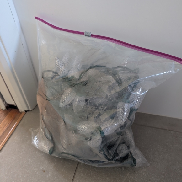 Decorative white string lights. Perfect for festive decor. blue hew