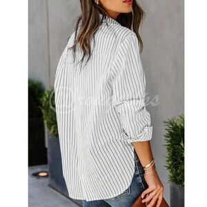 White Striped Shirt Button Up / Down Long Sleeve, Collar