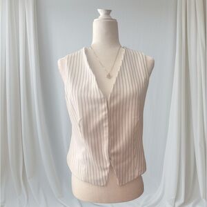 Elevate your style with this chic white striped vest top. Perfect for any occasion, this top offers a sleek and modern look.