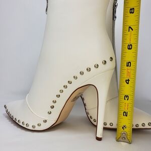 Step out in style with these chic white studded ankle boots. Perfect for any occasion, they add a touch of elegance to your outfit.