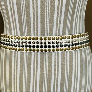 White Studded Belt Faux Leather Bold Multi-Metal Women's Size M Vintage Vibes