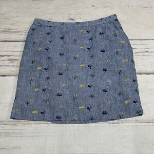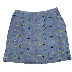 White Stuff Skirt Blue White Stripes Floral Embroidered Size 8
