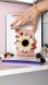 The canvas background mirrors the dusty rose shade, enhanced with delicate specks of glitter that tie the piece together. Small, smooth stones—light quartz-like gems and a darker counterpart—are thoughtfully arranged near the base, completing this elegant seasonal display with a grounding, earthy charm.