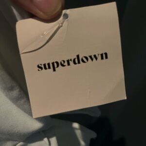 White NWT Superdown Jumpsuit size Large. Tapered leg. Tuxedo strapless