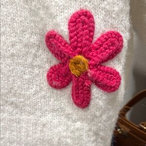 White Sweater with Colorful Floral Accents sz s