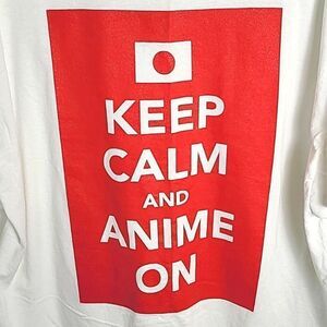 White T-Shirt with Red Lettering, Right Stuff & Keep Calm & Anime On, Size 2X
