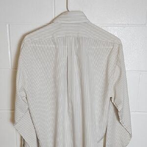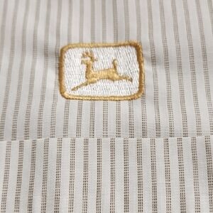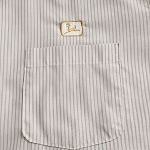 White Tan Mini Stripe Casual Button Down 1 Pocket John Deere Shirt