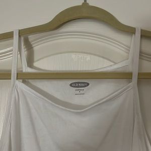 This is a simple white tank top from Old Navy. It has been rarely worn. It has a unique neckline, and it is perfect for summer.