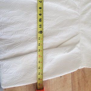 A beautiful white dress, fully lined, fitted at the waist, hidden zipper in the back, perfect for an Easter dress or a dress for a guest to wear to a wedding. Beautifully made, no flaws or rips, very comfortable and stylish. I bought it here on Poshmark, and the waist was a bit to small. It is marked made by Sandra Darren size 12.