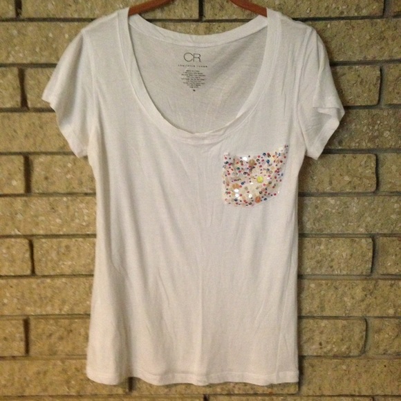 EUC white tee with sequin pocket detail