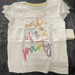 Elevate your style with this chic white tee from . Featuring vibrant, colorful lettering, it's perfect for adding a playful touch to any outfit.