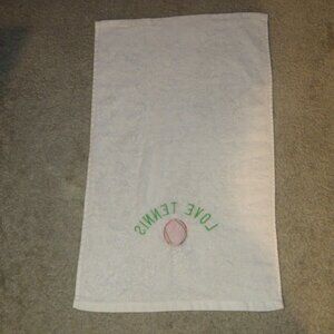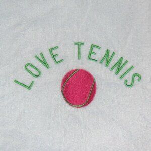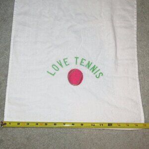 White Tennis Towel "Love Tennis" Logo & Tennis Ball Pic - abt. 26" L x 16' W