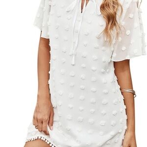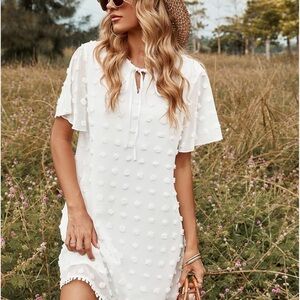 Stay stylish with this elegant white textured dress. It is fully lined perfect for many summer occasions - easy to dress up or dress down for a casual look. It is brand new with tags.