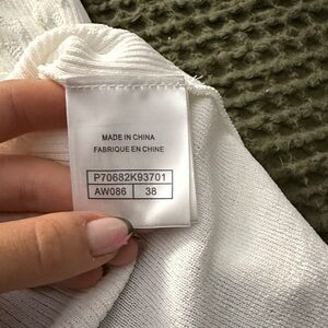 Elegant white knit sleeveless top with a textured pattern throughout. Features a scoop neckline and slim, tailored fit that works beautifully for layering or wearing on its own. Lightweight and versatile — dress it up with trousers or down with denim.