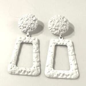 White Textured Metal Drop Earrings