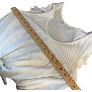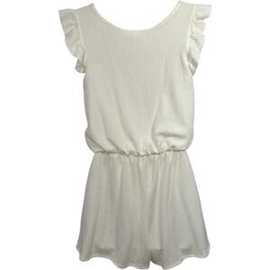 White Textured Ruffle Sleeve Romper Womens M Tie Waist Soft Girl Summer Playsuit