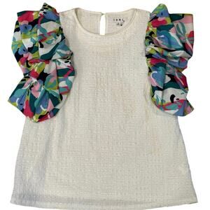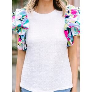 White Textured Top with Bright Puff Sleeves – THML Size S