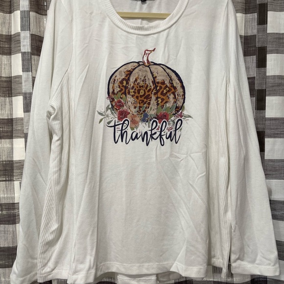 Embrace the season with this stylish white long sleeve tee featuring a 'Thankful' design. Perfect for casual outings and cozy days.