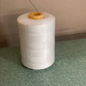 Large spool of white thread. Perfect for sewing projects.