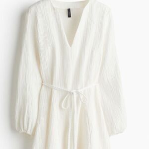 White Tie-Belt Balloon-Sleeved Dress, with belt, Size 36 S, H&M