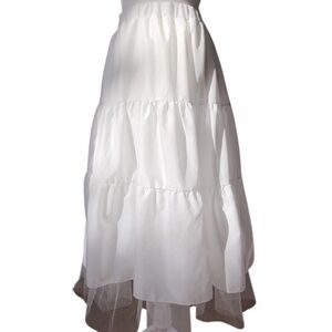 White Tiered Midi Skirt with Sheer Tulle Hem – One Size – 30”