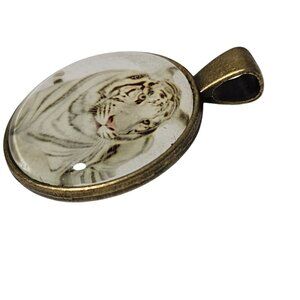 White Tiger Pendant Necklace Charm Glass Dome Antique Bronze Finish DIY Jewelry