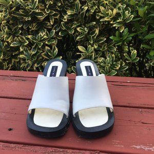 Vintage 90s or early 2000s White Tommy Hilfiger Square Toe Chunky Heel/ Mule sandal