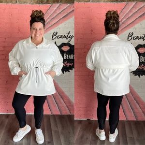 Fit/Cut: Fits true to size, toggle tie drawstring in the center to give more fit and side pockets