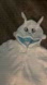 Cozy white animal onesie with playful blue accents. Features a fun hood with ears and face details.