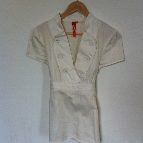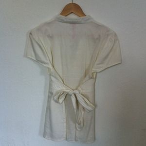 Cute white top with button accents in a corduroy ish material.