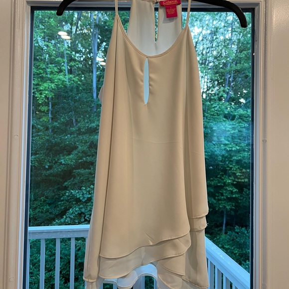 Longer white tank with some layers of fabric to create a more elevated look. So cute with the spanx faux leather leggings or jeans. Brand is Catherine and this was purchased at the Nordstrom Rack. Barely worn. Size small.