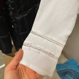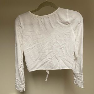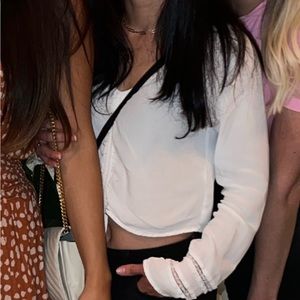 Thin, somewhat see through white top With lace on sleeves Cropped No signs of wear, good condition