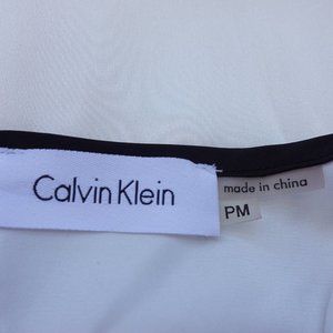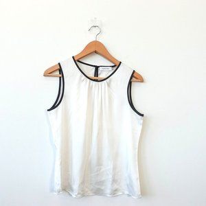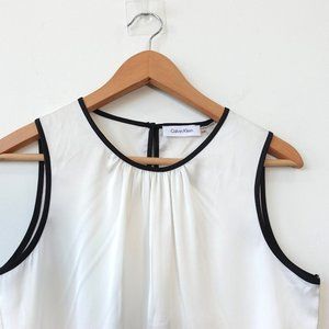 CALVIN KLEIN White Top Women Medium Tank Contrast Ringer Pleated Keyhole Petite