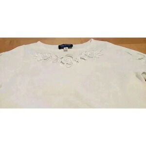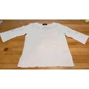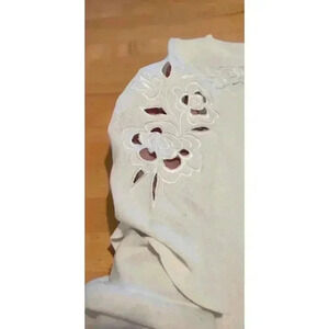 White Top Embroidered Roses Cut Out 3/4 Sleeve Bob Mackie 1990s Sz XS