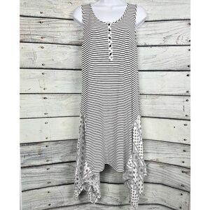 White Tree Black White Striped Handkerchief Hem Tank Dress M