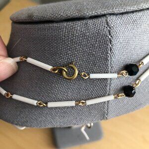 White Tube Beads & Black Glass Jet Bead Opera Length Necklace