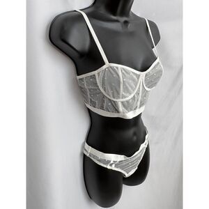 White Two Piece Lingerie Set Size M Polka Dot Bralette and Panties New Sexy