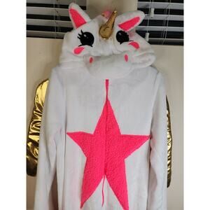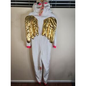 White Unicorn Pagesus Gold Wings Kigurumi Pajama Halloween Costume Size Medium