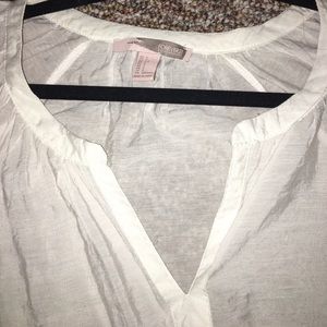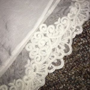 White Short Sleeve, Vneck Blouse! Worn a few times sleeves and bottom have white lace embroidery, light and airy fabric, beachy, good condition