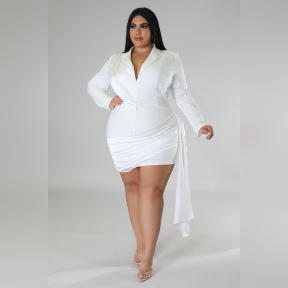 Step out in style with this elegant white blazer dress. Perfect for any occasion, this dress combines sophistication with a modern twist. The crisp white color adds a touch of class to your wardrobe.