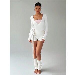 Ballet Style White V-Neck Long Sleeve Tie Side Wrap Shirt