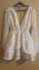 White V-Neck Mini Dress with mesh long sleeves, Med