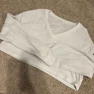 White V-Neck Ribbed Sweater