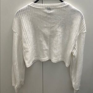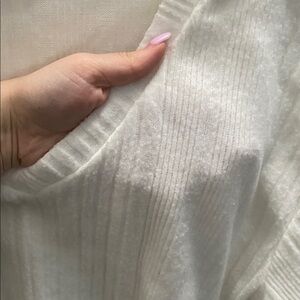 White V-Neck Ribbed Sweater