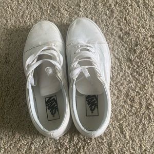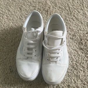 Size 7 white vans sneakers. Definitely have been worn but with a good wash they could be as good as new!