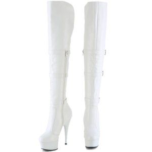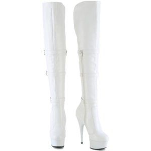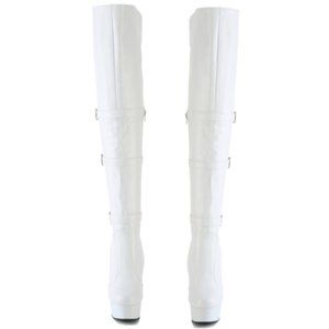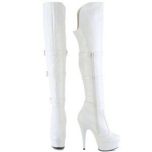 White Vegan Leather OTK Over the Knee Platform Thigh Boots Delight 6" Heels